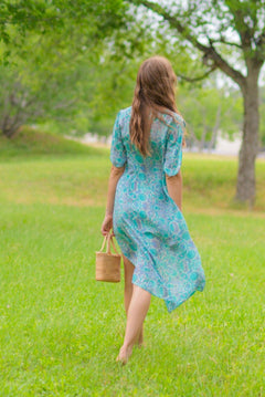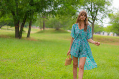 Each three-piece ensemble is made from reclaimed sari silk from India — handcrafted and completely unique. No two are ever the same.
