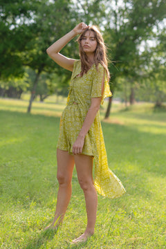 Thoughtfully designed in a one-size silhouette to flatter US sizes 2–8, thanks to elastic details, adjustable ties, and a relaxed drape.