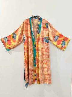 The Sakana Kimono is made from reclaimed silk crepe, sourced from vintage Indian saris. Light and breathable, this piece adds an effortless layer to any outfit — from mornings at home to evenings out.